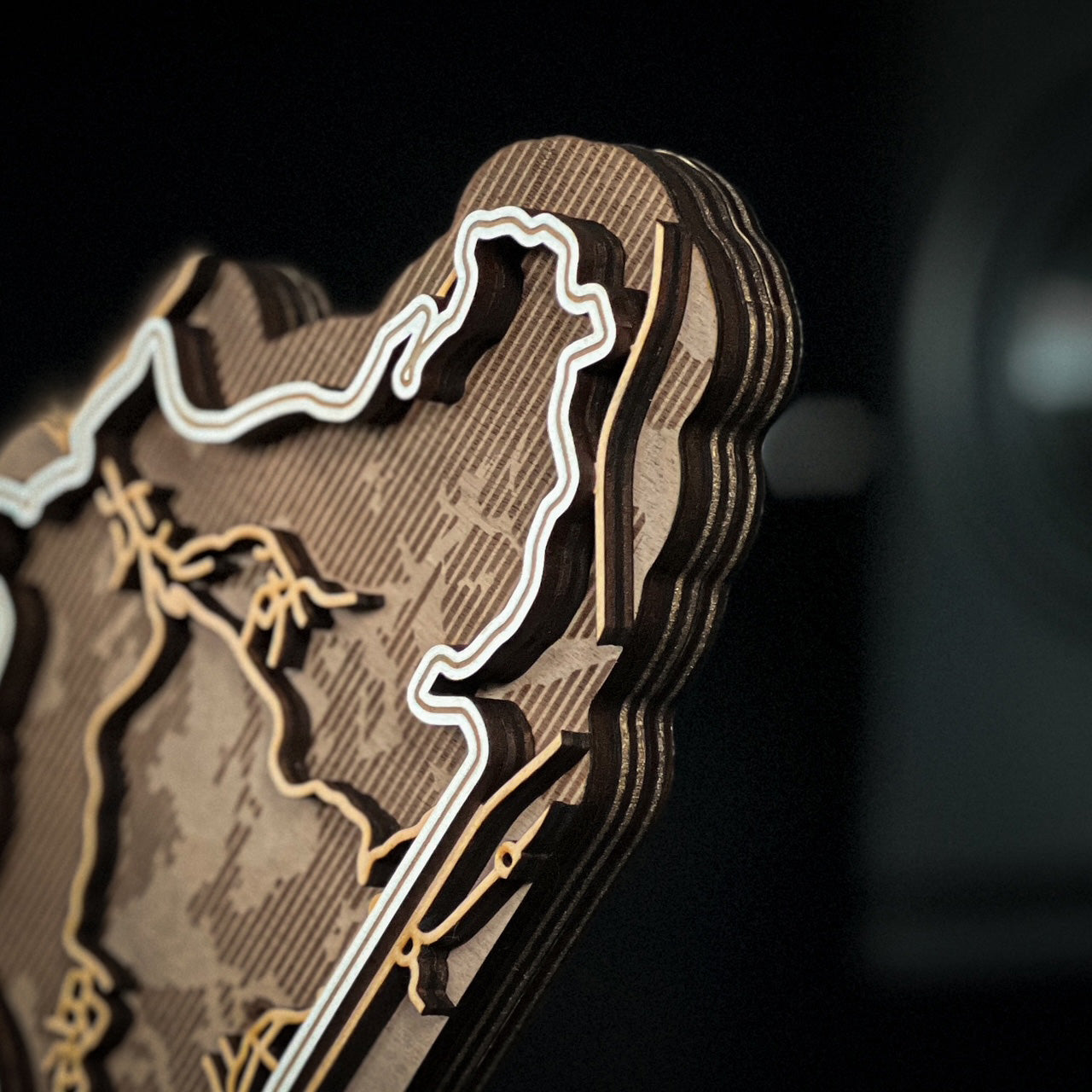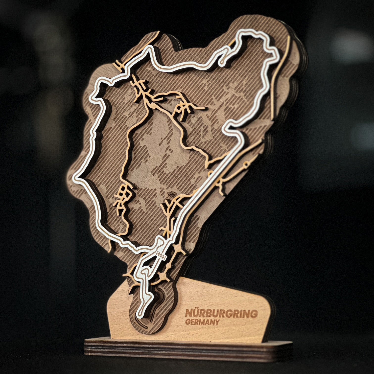Feel the thrill of motorsport in your home or office. This 3D wooden racetrack artwork combines precision-cut beech roads with a walnut base, laser-engraved for stunning detail. The engraved racing stripe makes your track pop, creating a dynamic centerpiece that’s perfect for décor or gifting a motorsport fan.